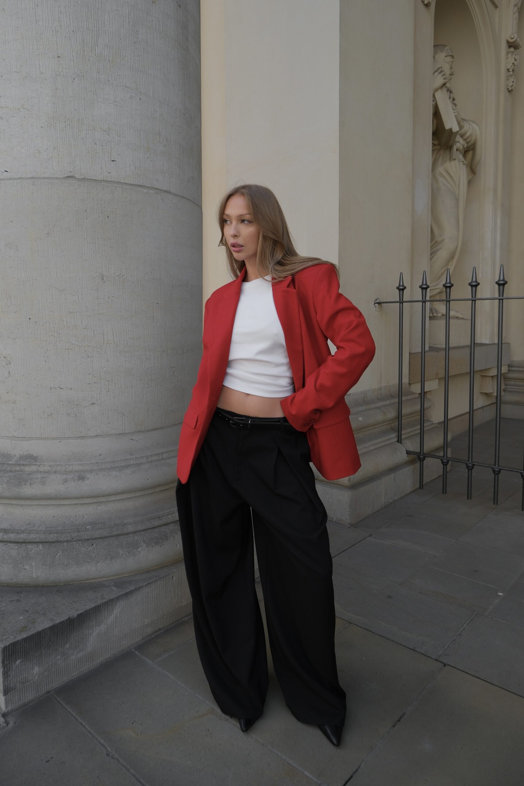 Elegancka, klasyczna marynarka w intensywnym czerwonym kolorze. Wykonana w 100% z wysokiej jakości wełny, zapinana na guziki. Idealna na wyjątkowe okazje i do codziennych stylizacji. Świetnie komponuje się zarówno ze spodniami, jak i spódnicą w casualowym i eleganckim looku.