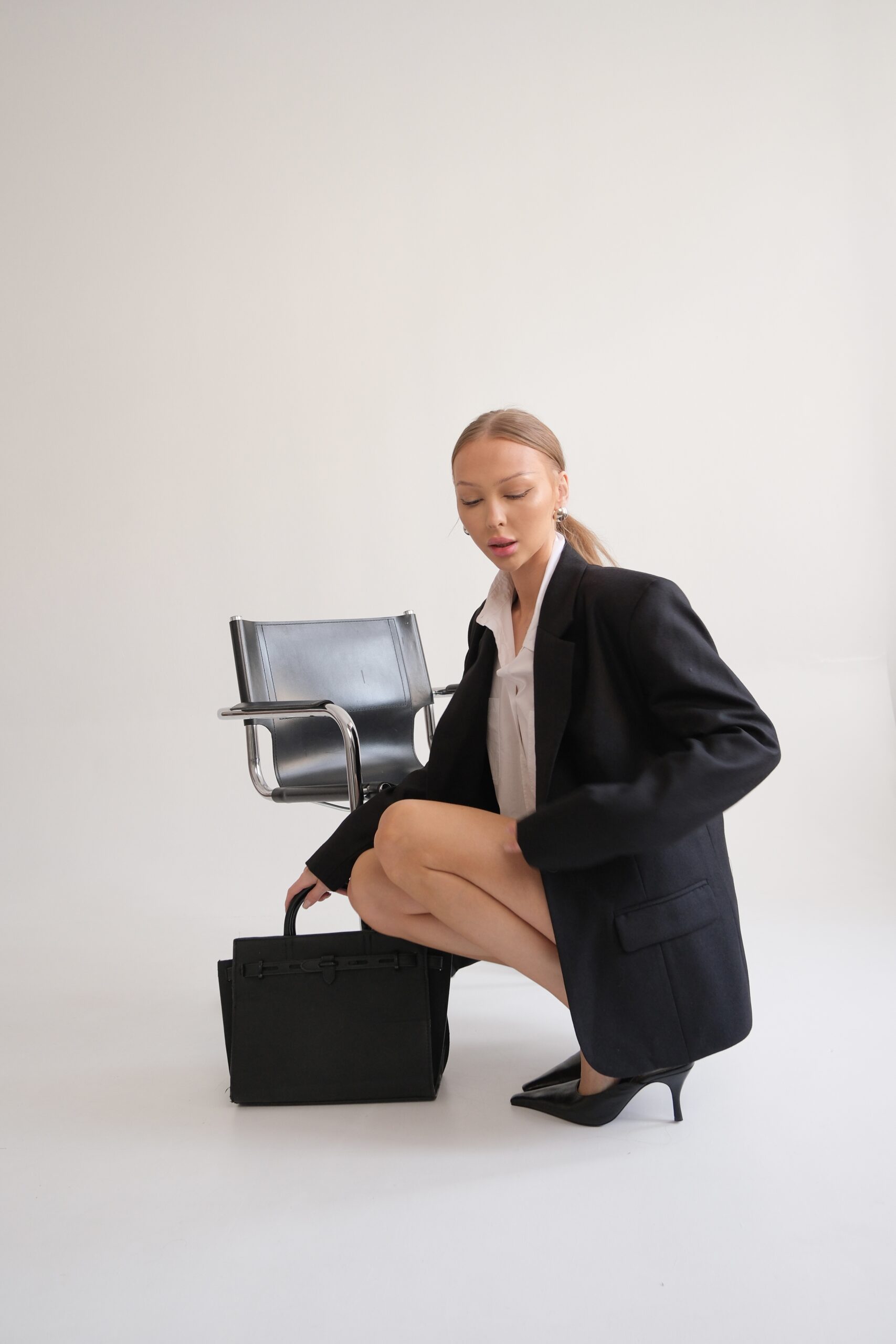 Elegancka, klasyczna marynarka w klasycznej czerni. Wykonana w 100% z wysokiej jakości wełny, zapinana na guziki. Idealna na wyjątkowe okazje i do codziennych stylizacji. Świetnie komponuje się zarówno ze spodniami, jak i spódnicą w casualowym i eleganckim looku.